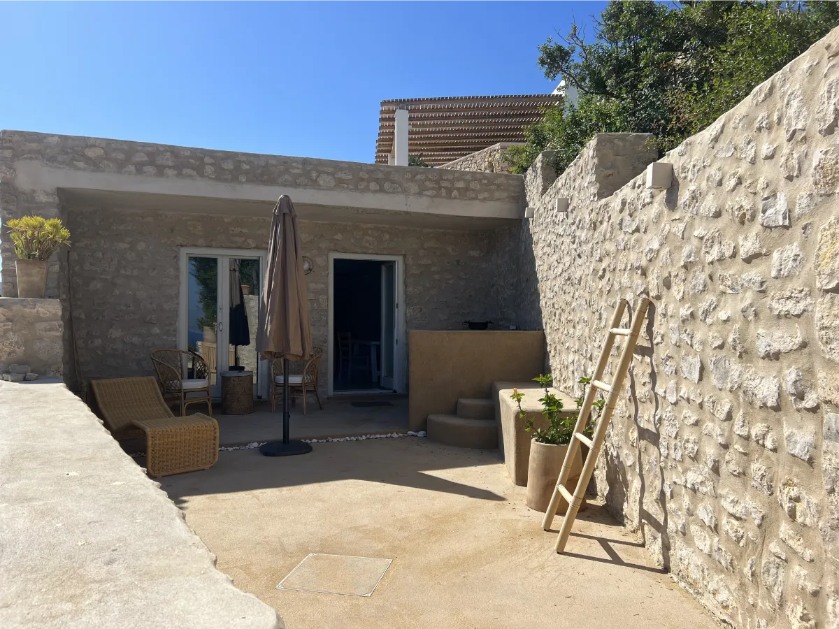 Im Jahr 2020 haben wir uns entschieden, die Naturstein-Ruine am legendären „donkey path“ oberhalb von Old Isterni zu neuem Leben zu erwecken. Das verfallene Gebäude diente wohl früher einem Bauern als Schaf- und Ziegenstall und als Lager für Futter und Wein.
