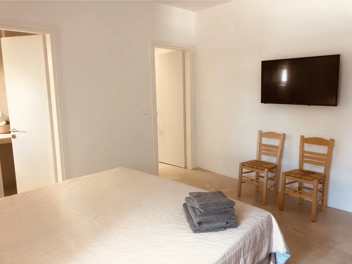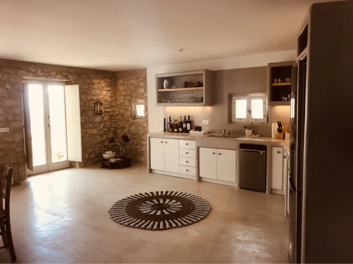Das Stonehouse erwartet Euch in sehr ruhiger Lage oberhalb von Isterni im Osten der Kykladen-Insel Paros mit einem herrlichen Blick auf die Ägäis und die Nachbarinsel Naxos. Auf einer Gesamtwohnfläche von 90 qm bietet das Stonehouse in zwei Schlafzimmern mit je einem Duschbad en suite vier Schlafgelegenheiten. Ein großer Wohnbereich mit Einbauküche und großem Esstisch sowie zwei Terrassen runden das Bild ab.